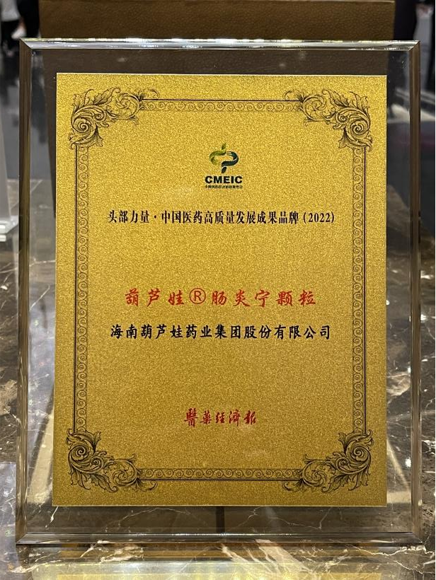 在本次发布会上,公司重点产品ks凯时牌肠炎宁颗粒同时荣膺“头部力量·中国医药高质量发展成果品牌(2022)”。ks凯时牌肠炎宁颗粒(2g),传承经典名方,临床广泛用于成人及儿童急慢性胃肠炎、腹泻等疾病的治疗,由于其杰出的临床价值,被纳入国家中医药管理局相关专家项目组制定的《中成药治疗小儿腹泻病临床应用指南》。